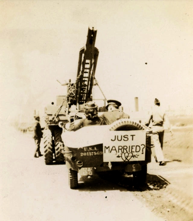 20117569 GPW 1943-04-24 Just married, getting towed